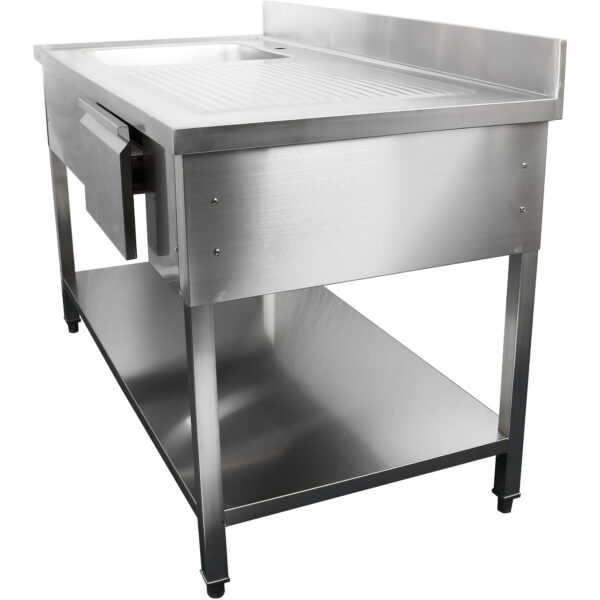 Algne hind oli: 1378,13 €.482,34 €Current price is: 482,34 €. (ei sis. KM)Valamu Roostevaba teras 1200x700x900mm 1 kauss vasakul Pritseplaat | Adexa DSA1270L