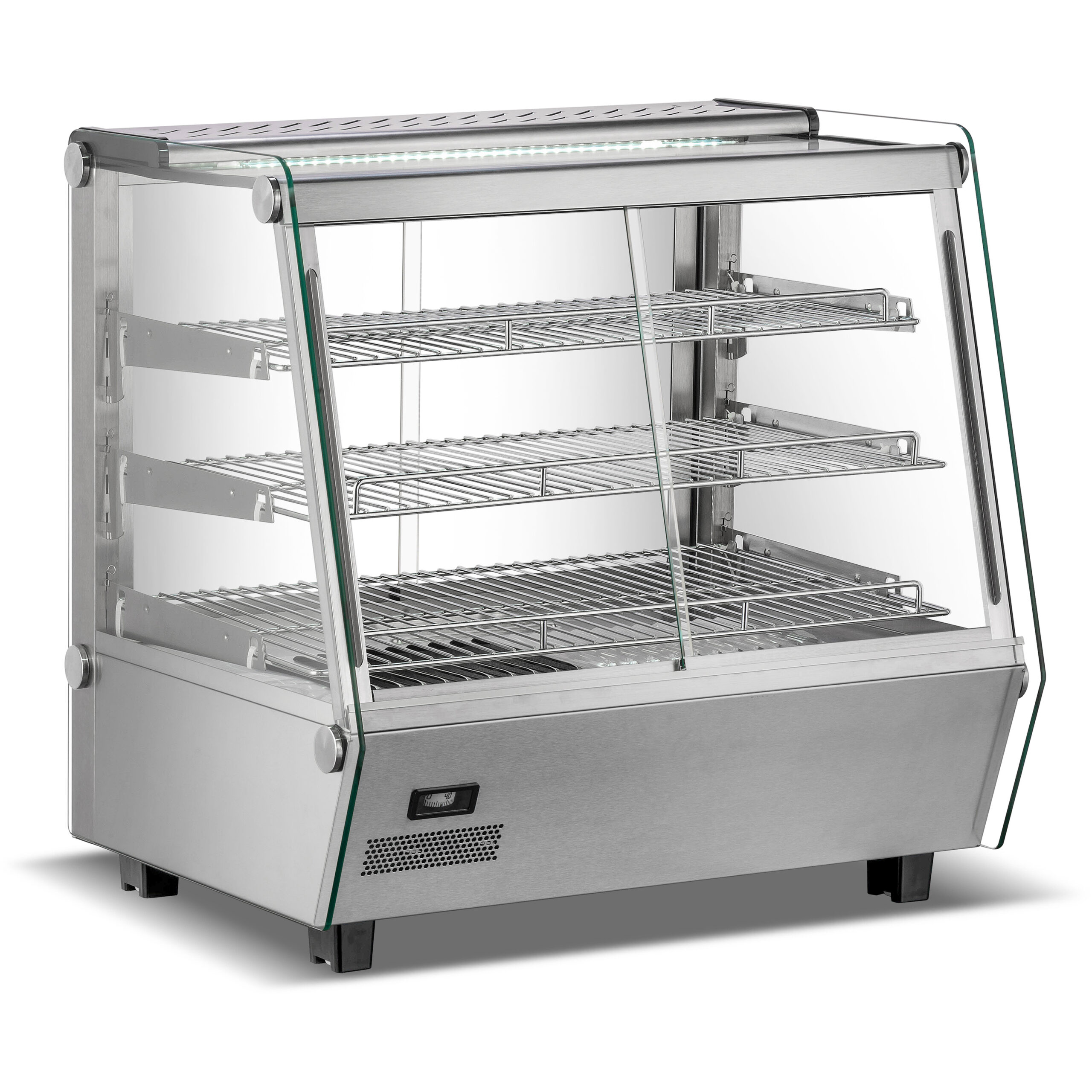 Atraktsioonina esitlege oma soojendusega pirukaid, lihapirukaid ja vorstirulle selles soojendusega vitriinkapis. Roostevabast terasest ja klaasist disain annab teie klientidele 360-kraadise vaate teie parimatele soojendatud toiduvalikutele, ideaalne kohvikutele, toitlustamiseks, kontsessioonidele, mugavuspoodidele, pubidele ja baaridele, restoranidele ja kohvikutele, supermarketitele, delikatessipoodidele ja teistele professionaalsetele toitlustusasutustele. Mahutavus: 120 L Temperatuuri vahemik: +30 kuni +90°C Võimsus: 1100 W Reguleeritav temperatuuri kontroller Kroomitud riiulid Roostevabast terasest ja klaasist disain Esi- ja tagaukse ligipääs LED valgustus Dokumendid Klõpsake siia, et alla laadida kasutusjuhend Palun vaadake “Spetsifikatsioonid” all põhjalikku teavet.