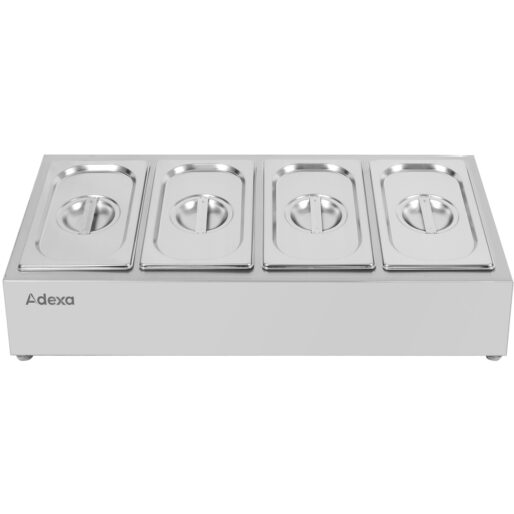 Algne hind oli: 76,64 €.25,29 €Current price is: 25,29 €. (ei sis. KM)Lauapealne süvend GN nõudele, Sisaldab 4Xgn1/6-100Mm Ja 1Xgn1/3-100Mm | Adexa Chd04A2