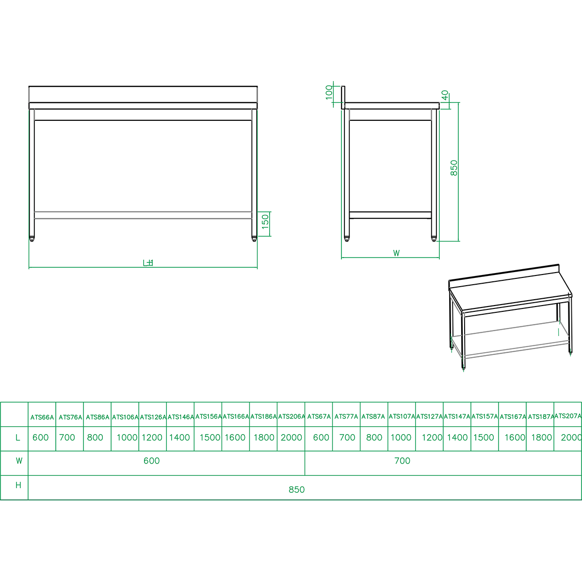 Algne hind oli: 301,99 €.105,70 €Current price is: 105,70 €. (ei sis. KM)Professionaalne töölaud Roostevabast terasest, Alusriiul Pritsmekaitse 1500x600x900mm | Adexa W218E60150B