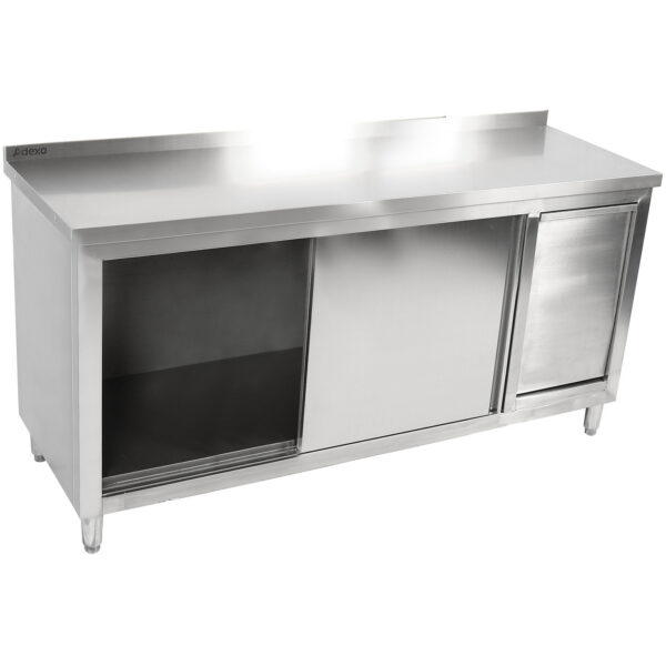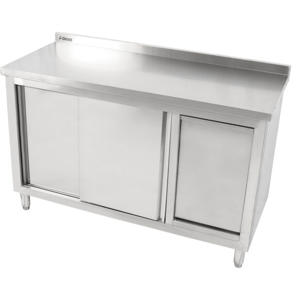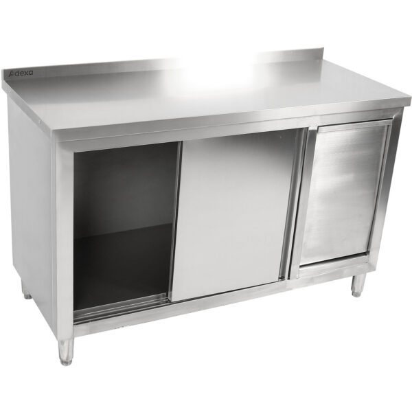 Algne hind oli: 1319,08 €.448,49 €Current price is: 448,49 €. (ei sis. KM)Tööpind Põrandakapp 2 Lükandust Roostevaba Teras 1400X600X850Mm Pritsmekaitse | Adexa Scp14060B